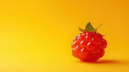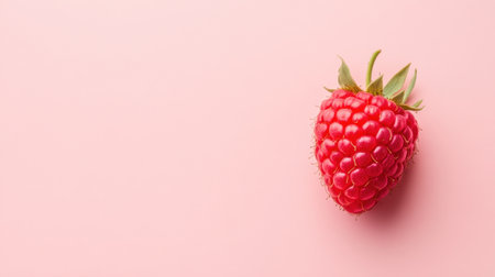 A vibrant and juicy raspberry rests on a soft pink backdrop, showcasing its texture and color, ideal for food-themed designs or health-related projects.