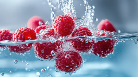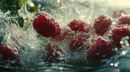 AI Generated. Raspberries splashing in water creating a vibrant scene