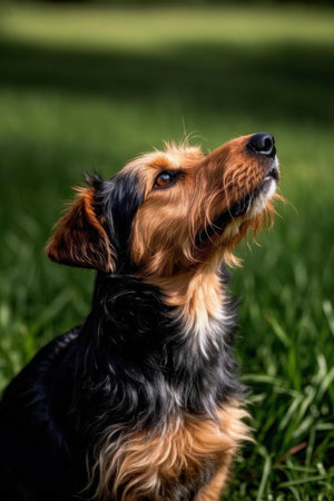 AI Generated. Curious Shepherd Mix Gazing with Alert Ears and Intelligent Eyes