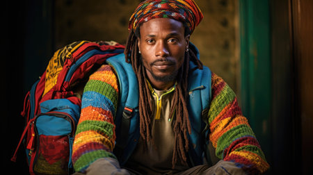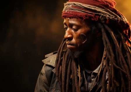 A man with dreads and a red jacket. Generative AI image.