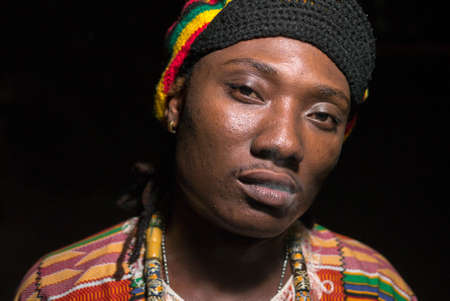Unidentified Togolese man with traditional clothes at the Lome central market. Togo people suffer of poverty due to the bad economy