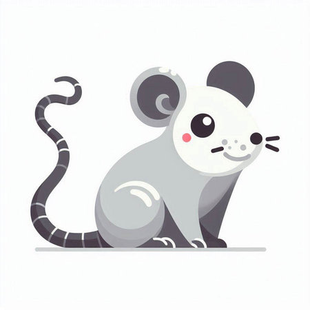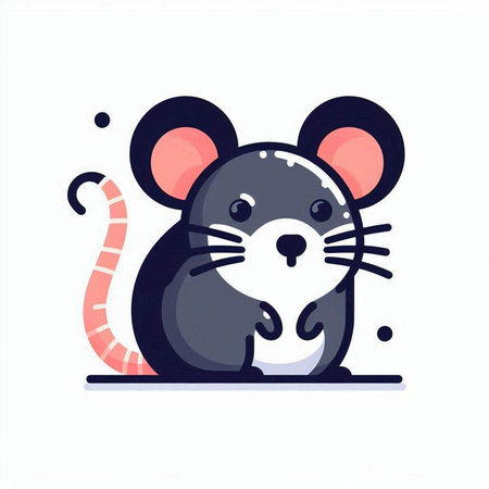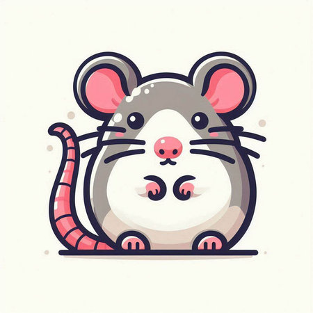 Cute cartoon mouse. Vector illustration of a rat on a light background.