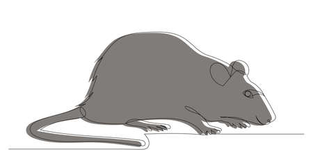 Vector illustration of hand drawn rat. Rat colored and depicted by a line.
