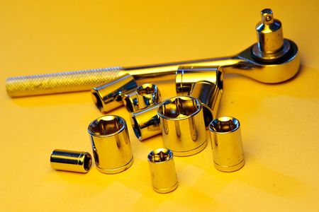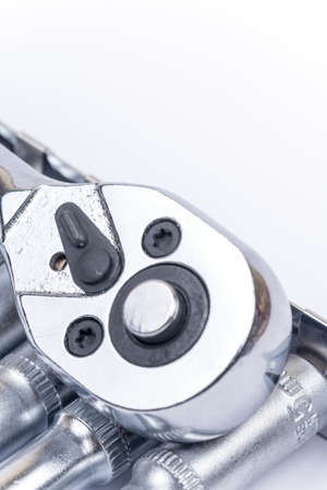 metal ratchet with sockets set on white background