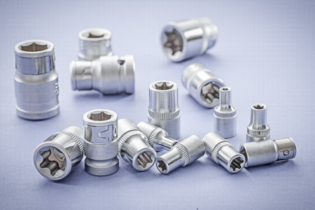 Close up set of socket wrench heads