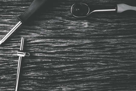 Torque wrenches set or spanners car repair. Tools for professional or self-repair car. Dark gray background. View from above.