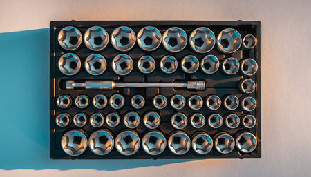 A collection of various sockets and wrenches gathered in a box