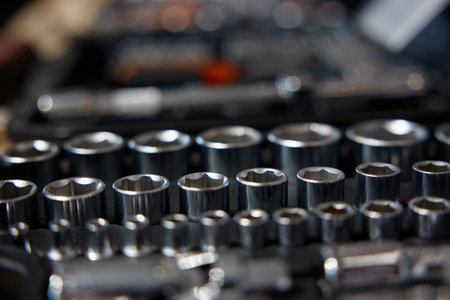 Auto service tools and ratchet sets. High resolution image for automotive industry.