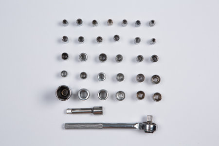 metal ratchet with sockets set on white background