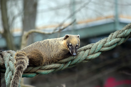 Ring Tailed Coati Lying on Rope