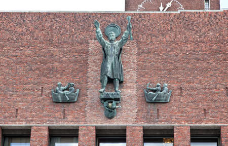 Norway. Oslo. Oslo City Hall, built of dark brick. September 18, 2018