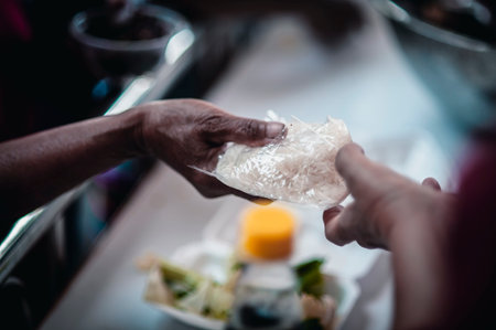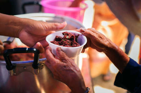 The hands of poor have been aided by charity food to alleviate hunger: The concept of social sharing