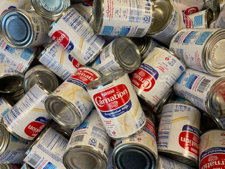 Columbia County, Ga USA - 12 01 21: Carnation evaporated milk piled up on display