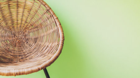 This image features a beautifully woven rattan chair positioned on a soft green background, showcasing a blend of minimalist and contemporary design, perfect for interior or outdoor use.