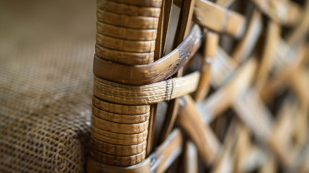 A closeup of a headrest made from natural materials such as bamboo and rattan exuding a rustic and earthy feel
