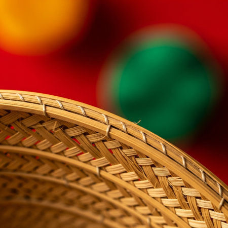 Close-up of woven bamboo matting, highlighting traditional crafting techniques and natural materials