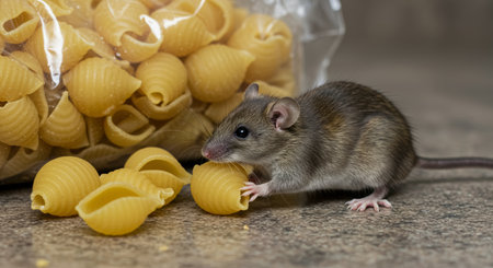 A rat darting across a pile of garbage its little paws clutching bits of moldy food.. AI generation