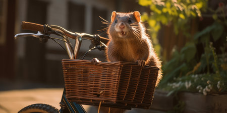 hamsters have fun bicycle ride on sunshine day in summer on town street