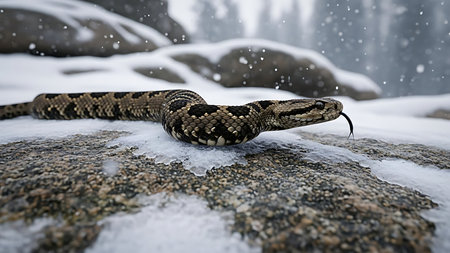 American rattlesnake (Crotalus americanus) in the snow