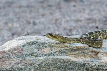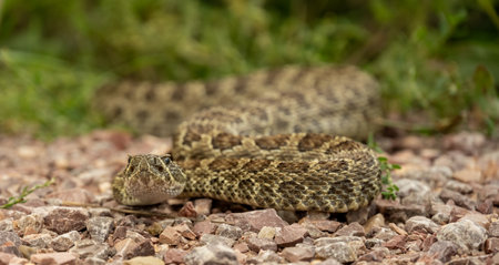 Ground Level View of Rattle Snake On Gravel in Wind Cave National Park