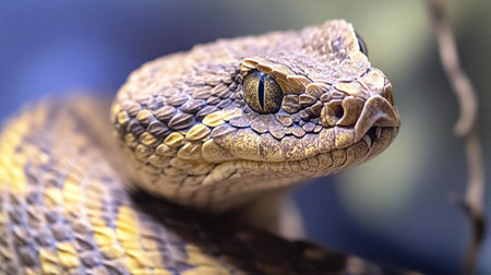 Yellow viper spirals up tree branch, dangerous and poisonous generated by artificial intelligence