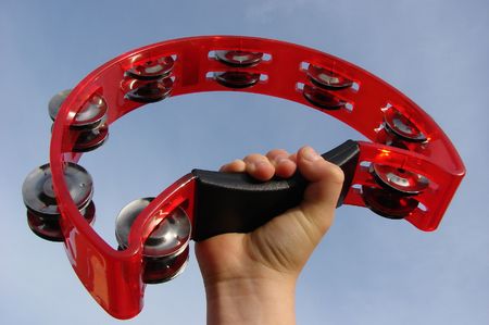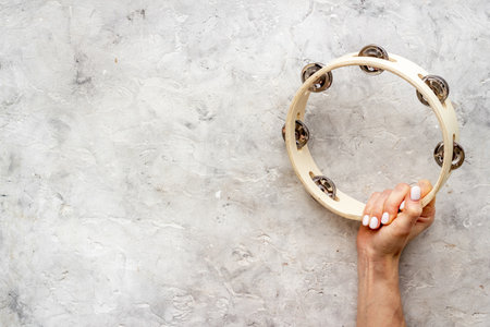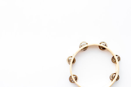 Musical instrument tambourine, top view. Music abstract background