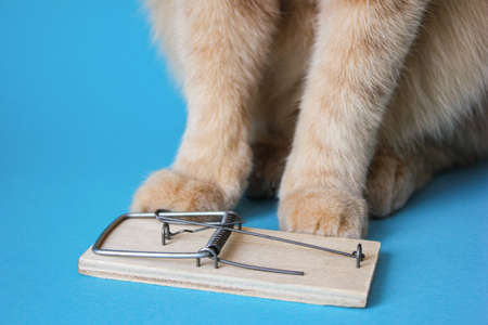 Cigarette on a mouse trap close-up. Dangerous habbit concept