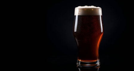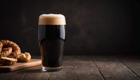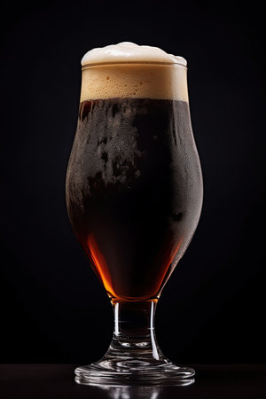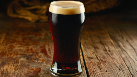 A beautifully crafted glass of dark beer showcases a rich foam. Perfect for beer enthusiasts, this image captures the essence of craft brewing and enjoyment.