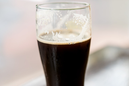 Pouring Irish beer. Close-up of a dark Irish beer, stout being poured in a traditional pub.