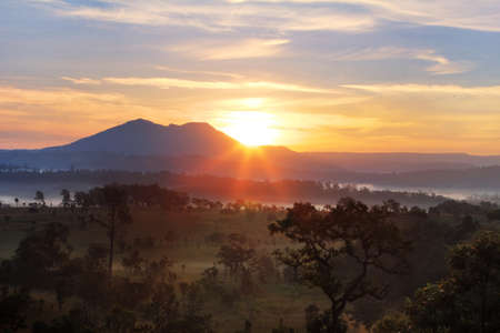 The beauty of the natural environment during sunrise and sunset at Khao Kho District ,Phetchabun Province in Thailand