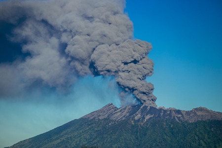 Eruption volcano and smoke emissions on the Gunung Agung, Bali, Indonesia