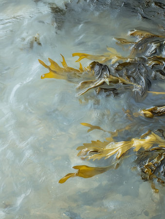 Exploring the intricate textures of kelp seaweed and its flexible plates in natural light