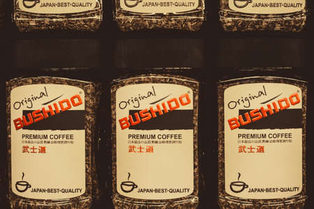 Volzhsky, Russia - apr 26, 2019: Japanese granulated instant Bushido coffee.