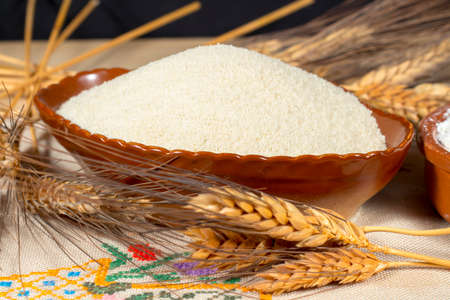 Dry Organic Ground Farina Wheat in a Bowl