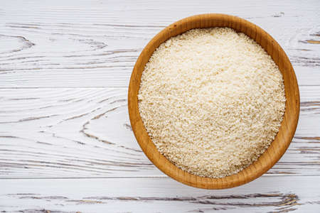 Panko Japanese bread in crumbs in the wooden bowl