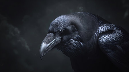 A stunning close-up portrait of a raven, showcasing its intricate feather details and expressive features against a dark, contrasting background.