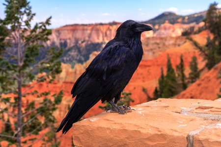 Large Black Common Raven in Bryce Canyon National Park, Utah, United States.