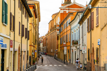 historical buildings and street of Reggio Emilia in Italy
