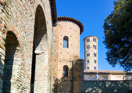 Exterior of the Church of Saint Apollinare Nuovo in Ravenna, Italy. Built in the 6th century, it houses beautiful byzantine mosaics of the 5th and 6th centuries.