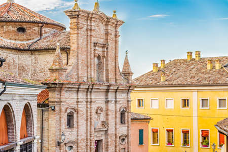 typical colorful buildings in main square of Cesena, undiscovered wonderful city of Italy