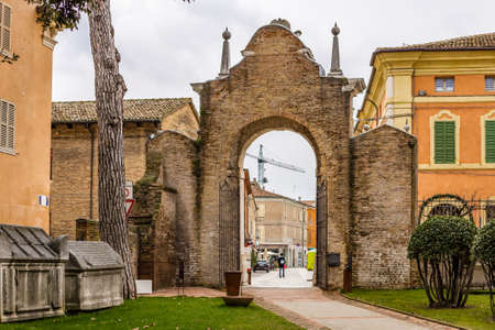 Entrance gate to famous Basilica di San Vitale, one of the most important examples of early Christian Byzantine art in western Europe, in Ravenna, region of Emilia-Romagna, Italy