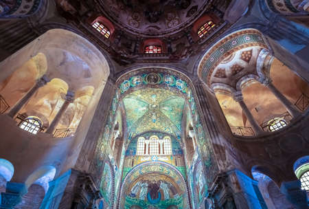 Famous Basilica di San Vitale, one of the most important examples of early Christian Byzantine art in western Europe, in Ravenna, region of Emilia-Romagna, Italy