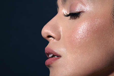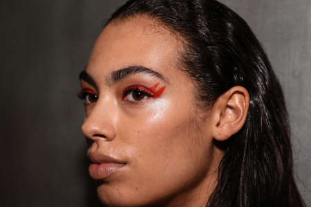 The close up picture of the fashion model at the backstage to prepare make up, the fashion model require skills like posing technique, fashion trend knowledge, facial expression and confidence. AIG43.