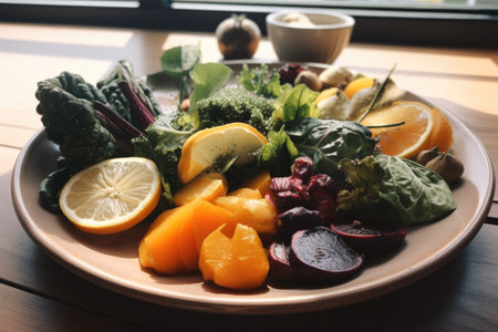 plate of fresh, local produce with zero-waste cooking techniques, created with generative ai