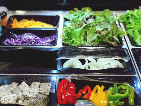 fresh vegetable salad are beautifully placed in a tray for customers to choose, Healthy Food concept