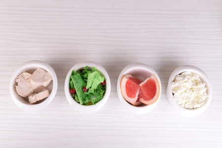 Dash flexitarian mediterranean diet on light background. Healthy food concept. Flat lay, top view, copy space, panorama
