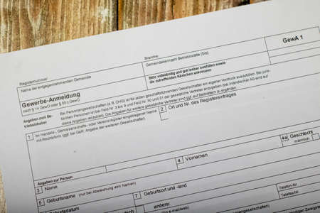 German standard form for business registration with the city or municipality to start self-employment in german language