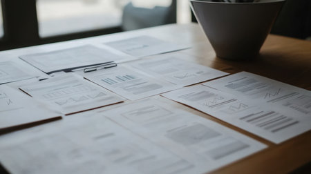 Clean desk with marketing funnel printouts and sales strategy plan