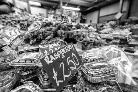 LONDON, ENGLAND - December 18 , 2017 Different types of vegetables on the Borough market in London