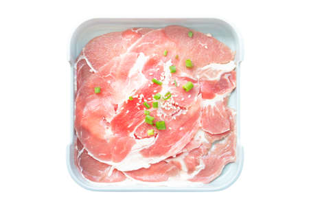 slice pork on white background